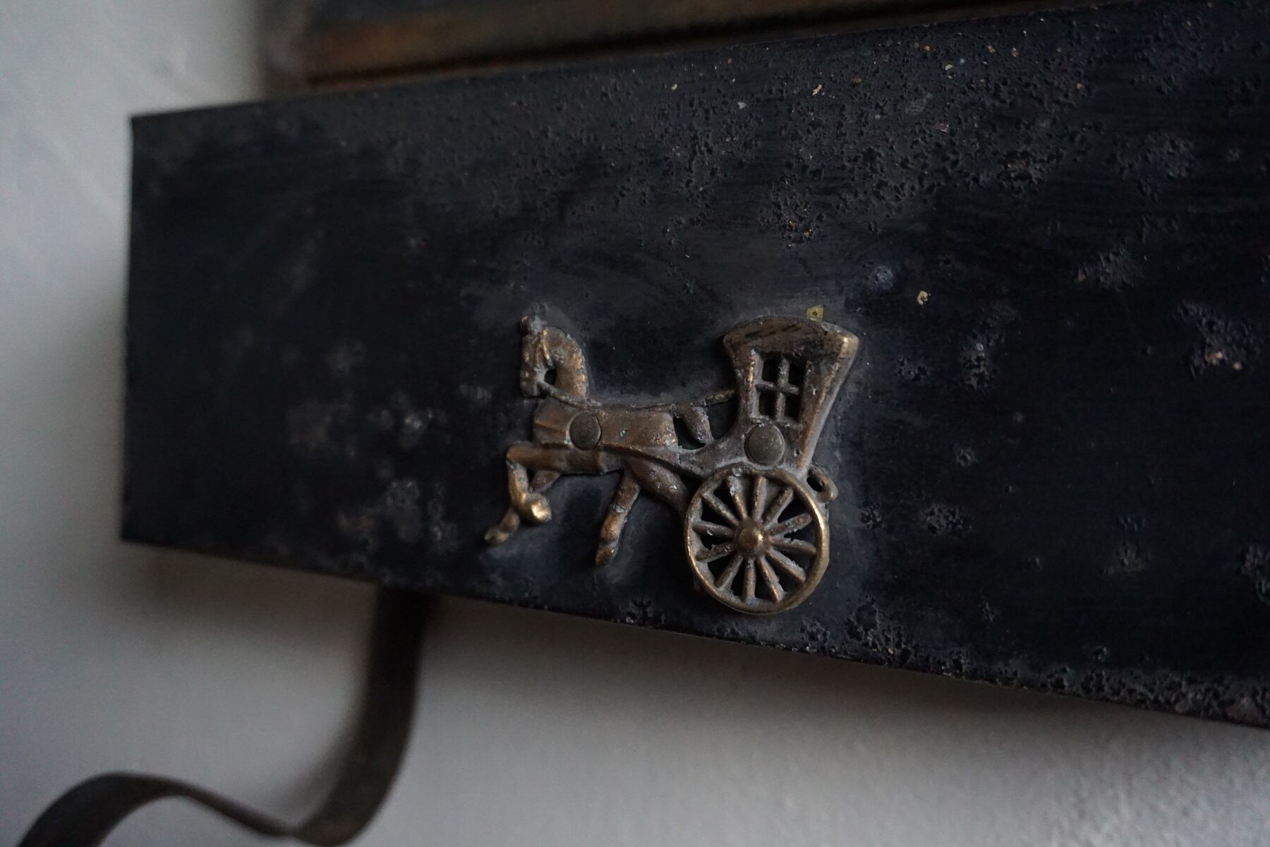 下にある、アイアンのアームは新聞を挟むための物のようです。
