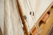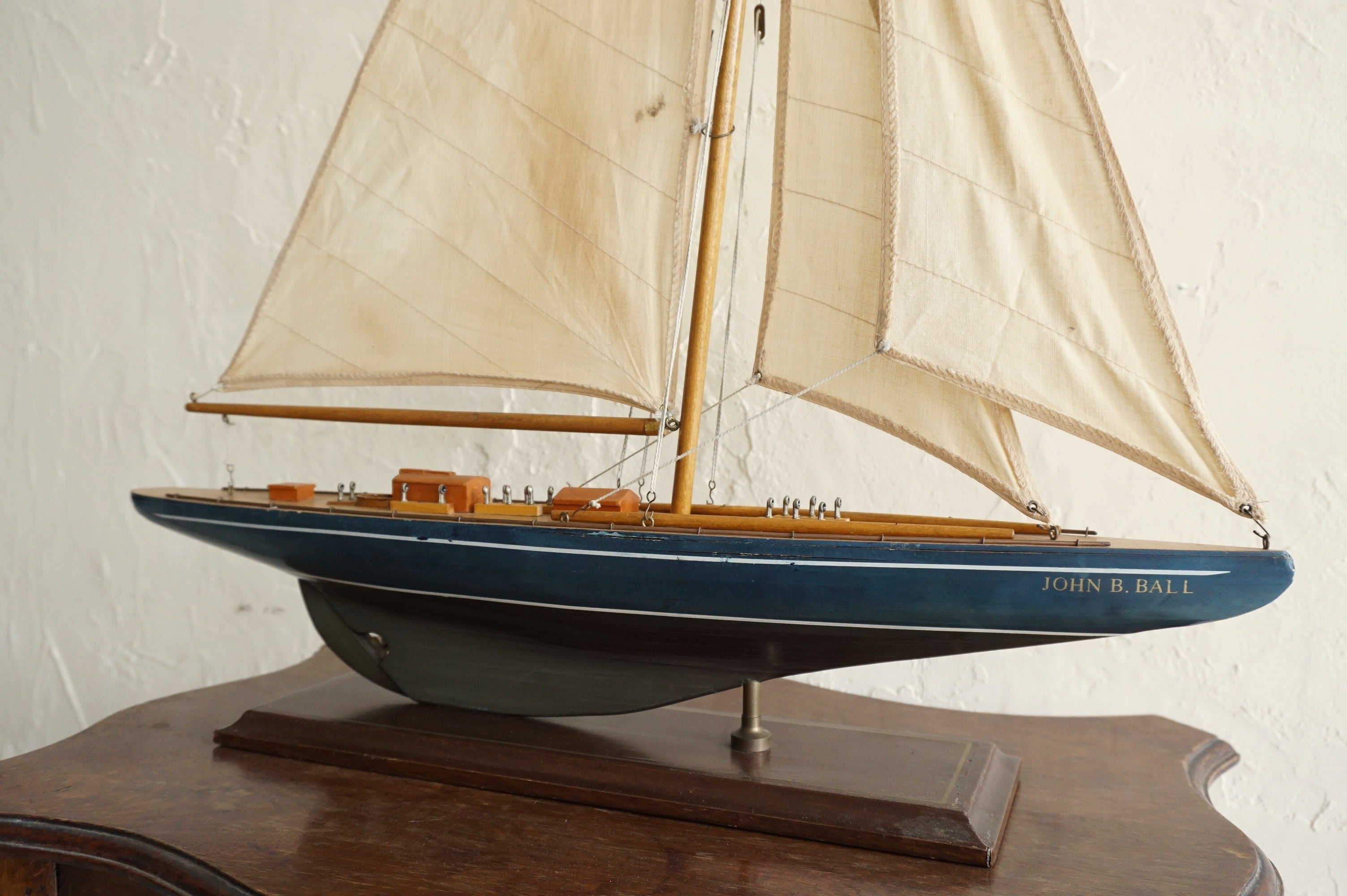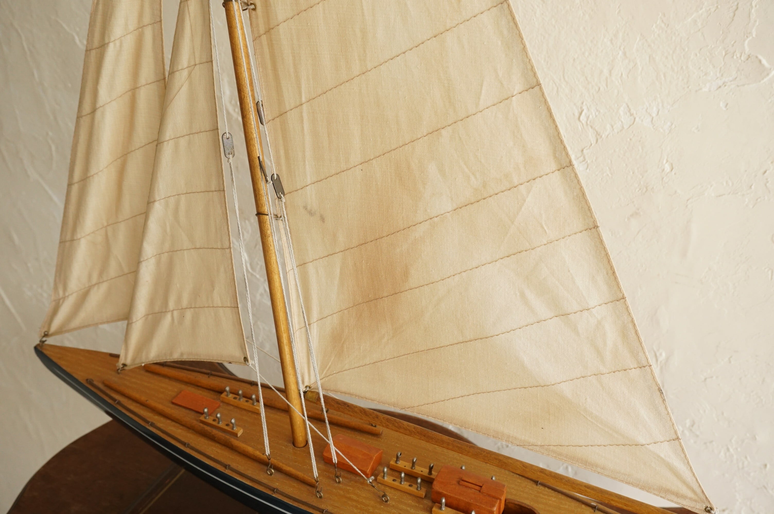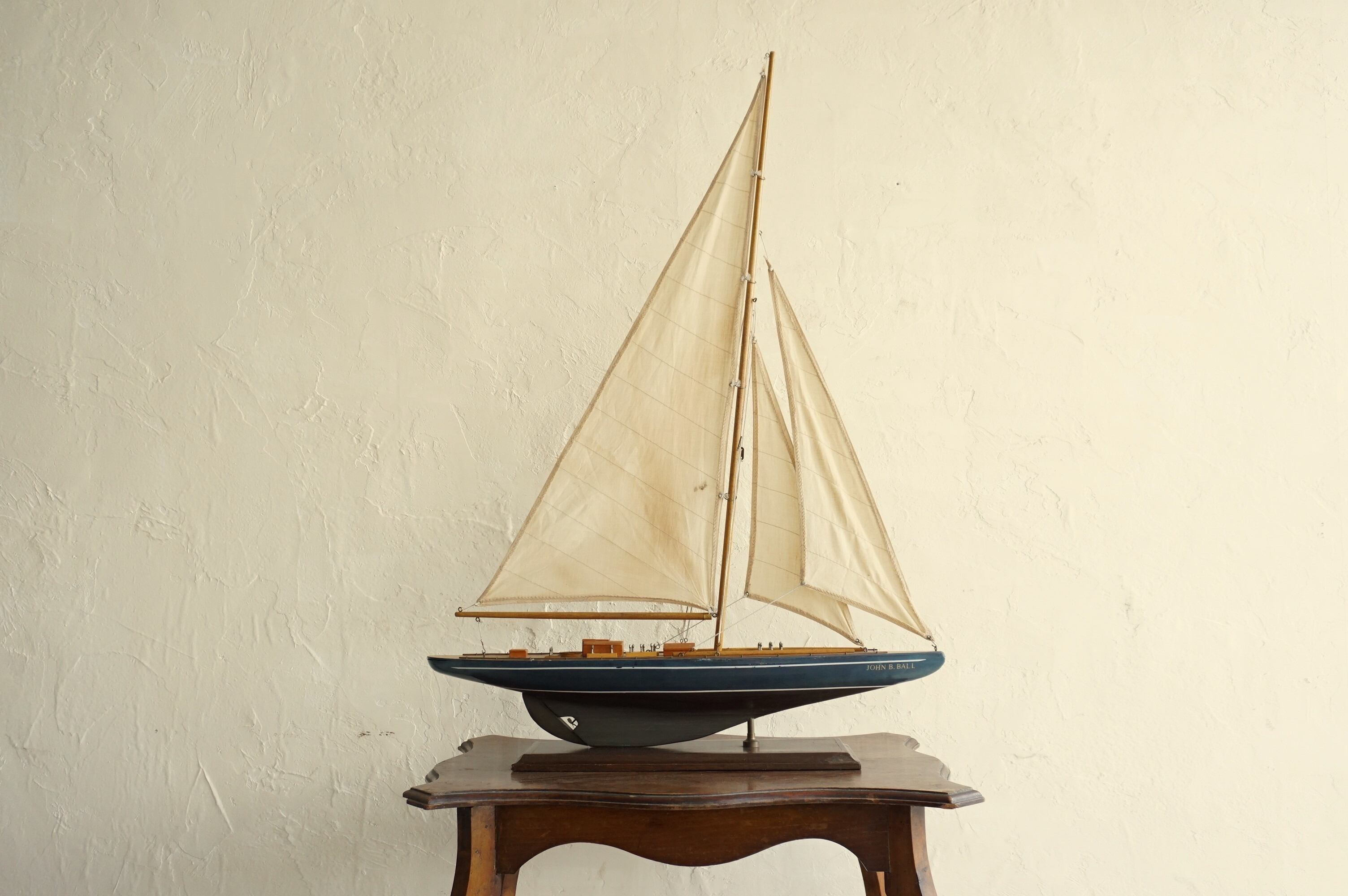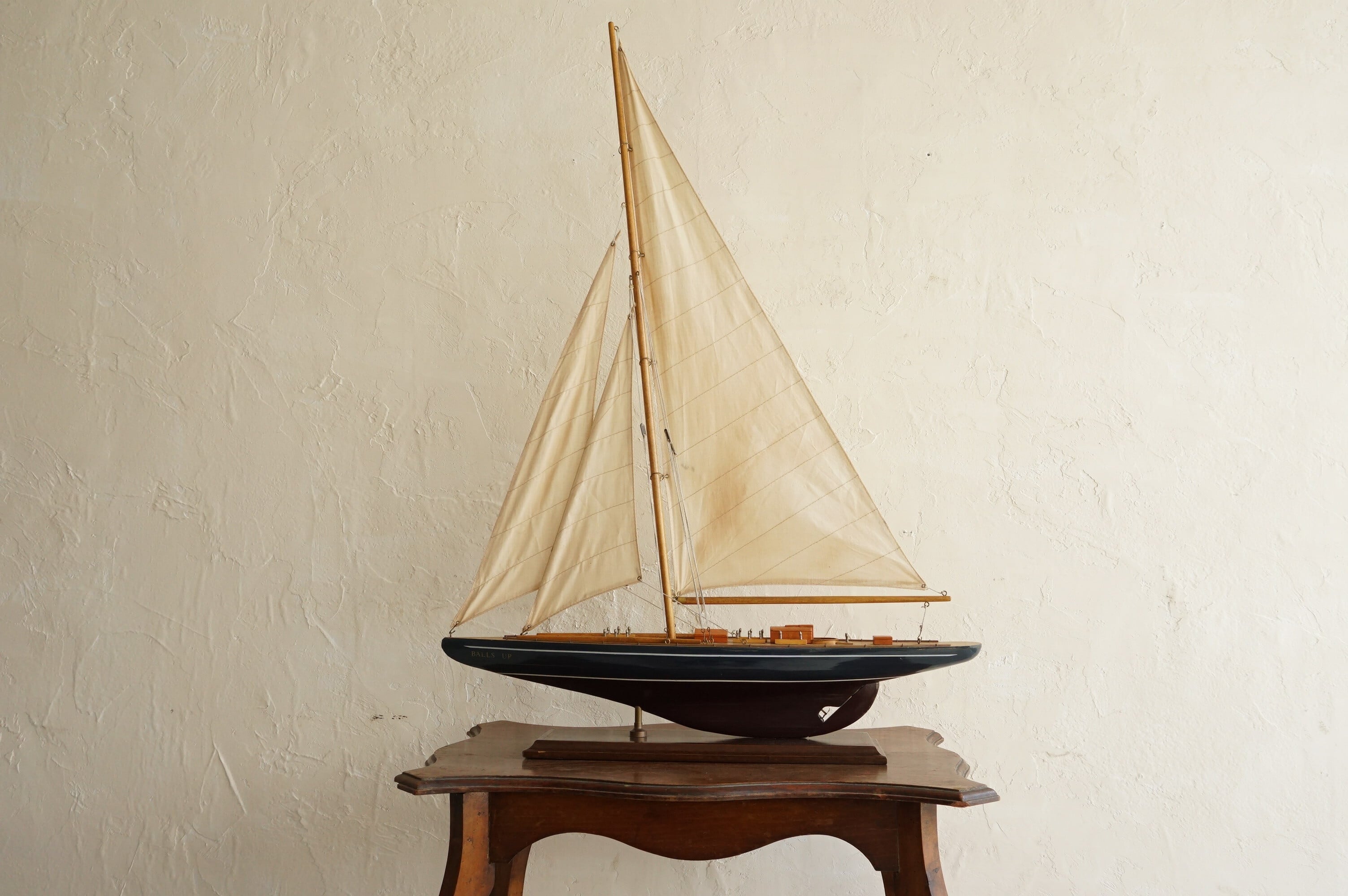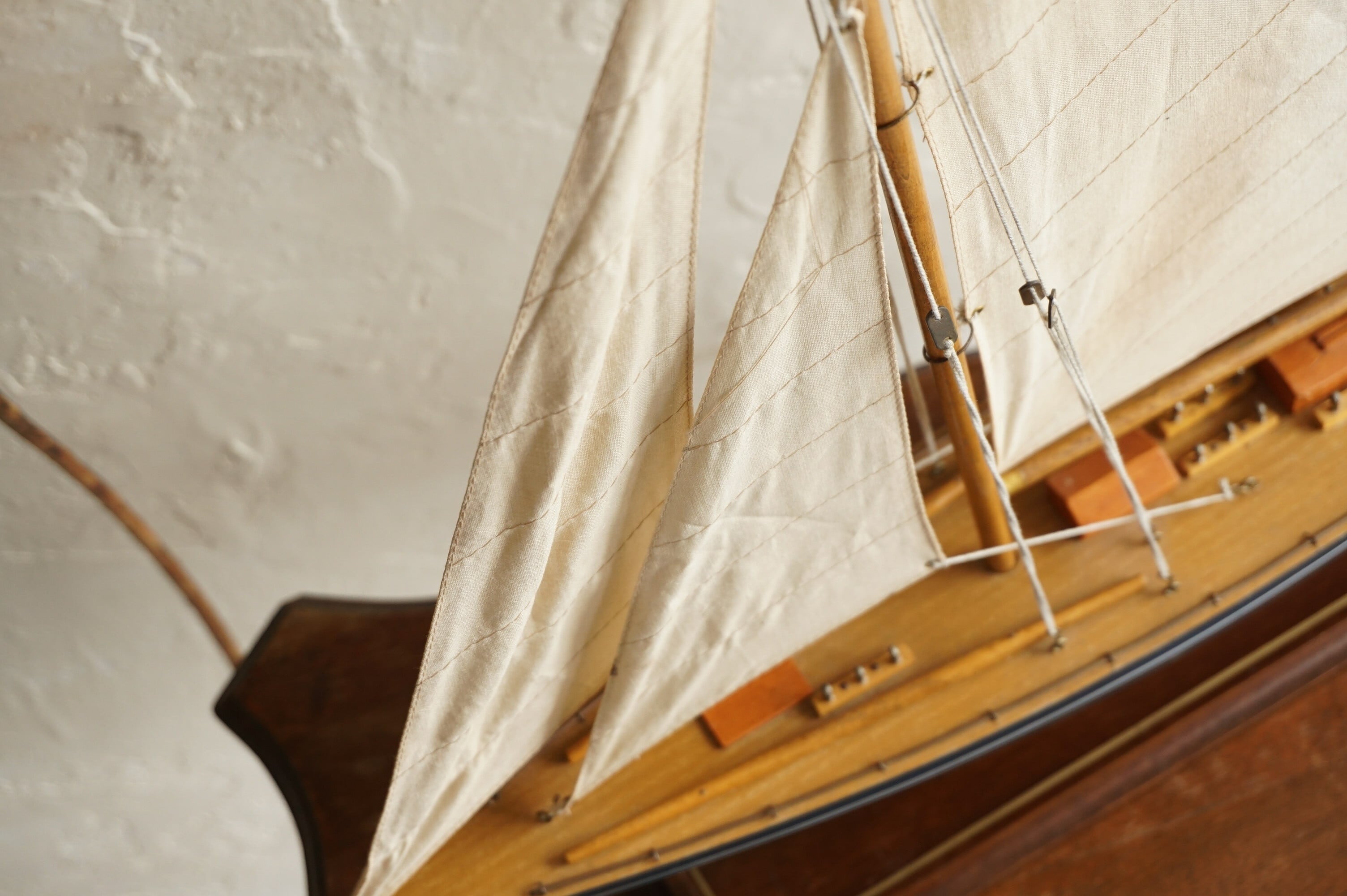 帆や船体に日光による日焼けやシミ、多少の傷などは見受けられますが、帆を広げた姿は美しく、とてもかっこいいです。