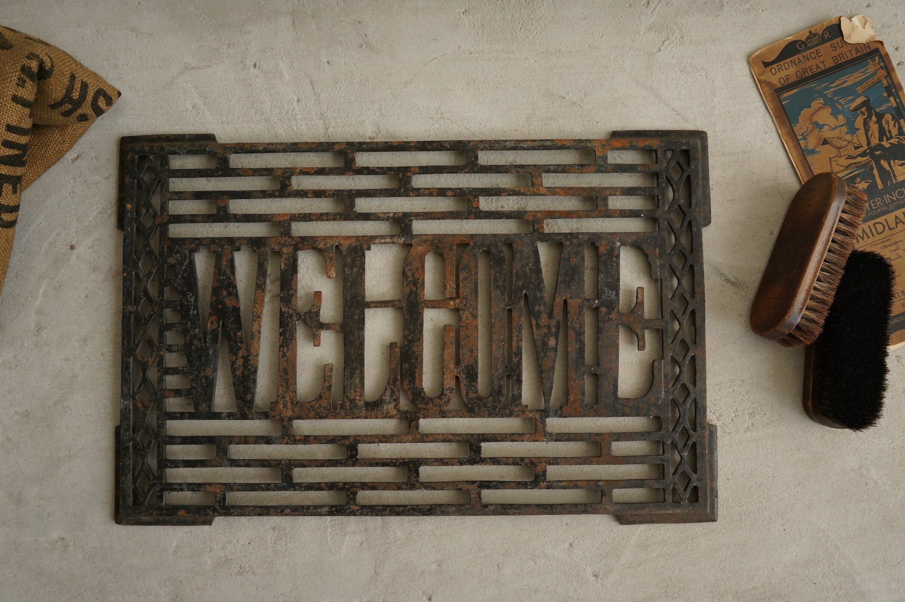 靴についた砂や土を落とすためのマットでして、WELCOMEと鉄でデザインされております。