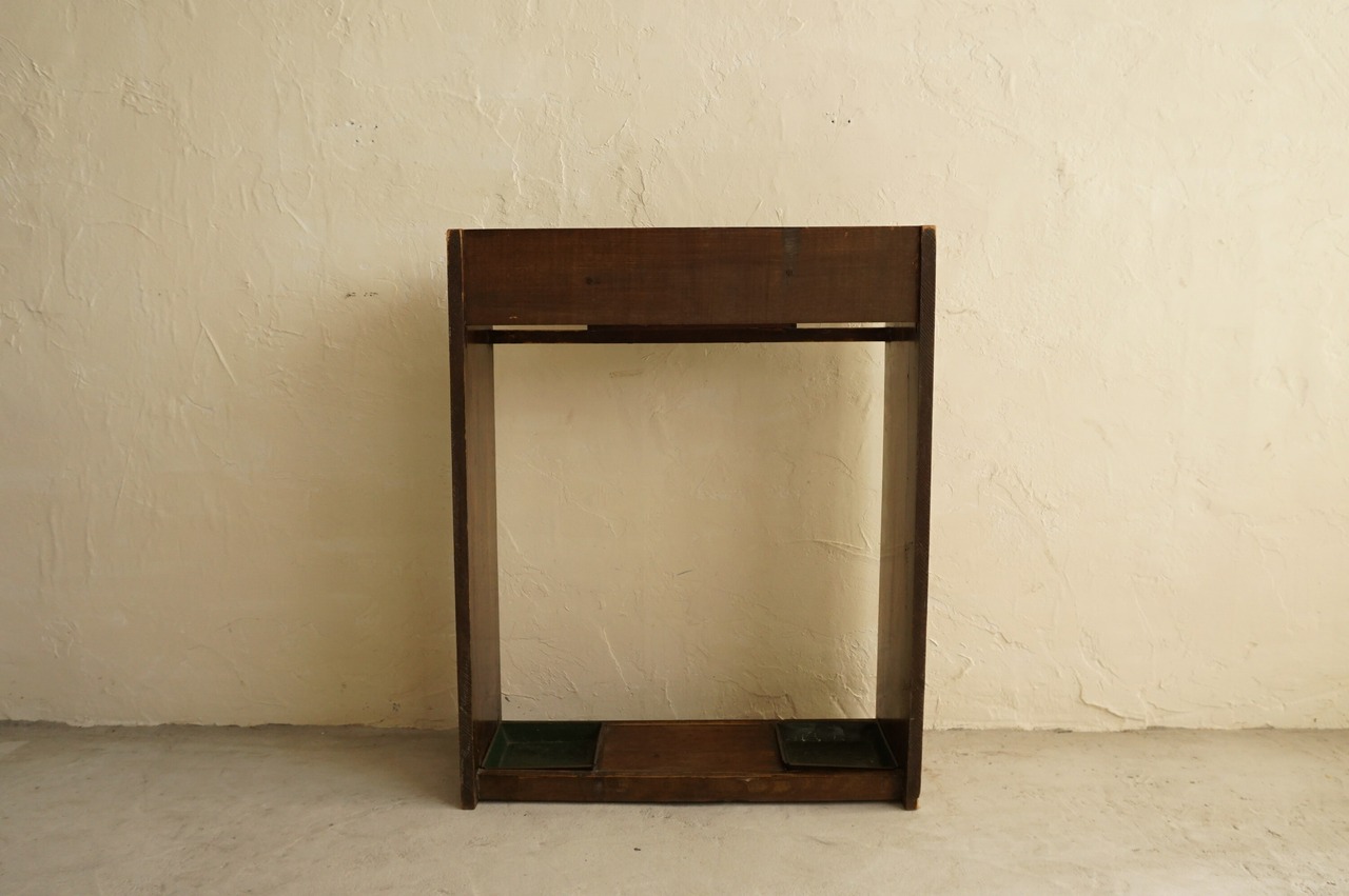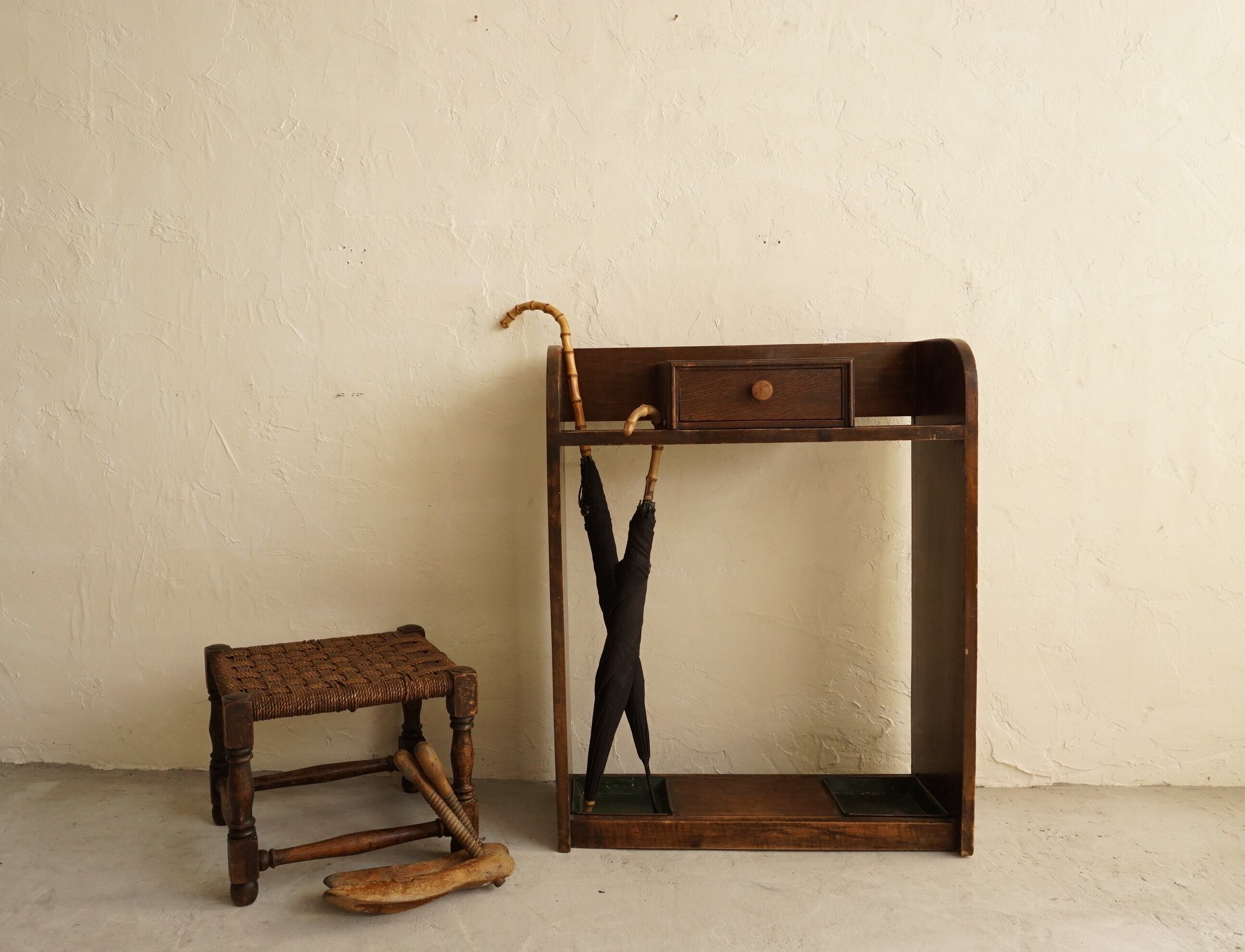 傘やステッキの先が当たる底の部分は、金属製で取り外しが出来ます。深いグルーン色も落ち着いたイギリス家具らしさが出ており、良い感じです。