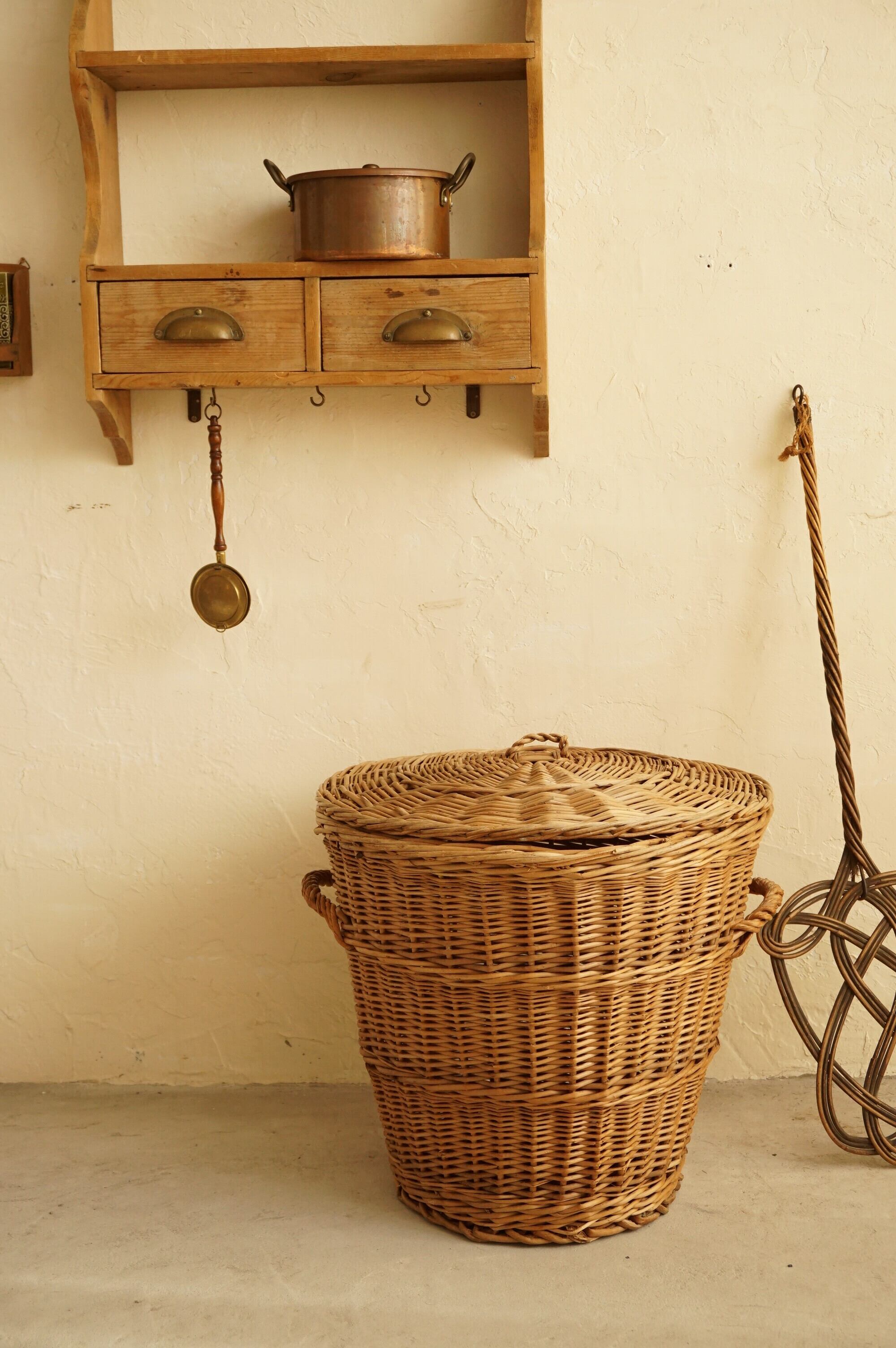 イギリス オールド バスケット 蓋つき