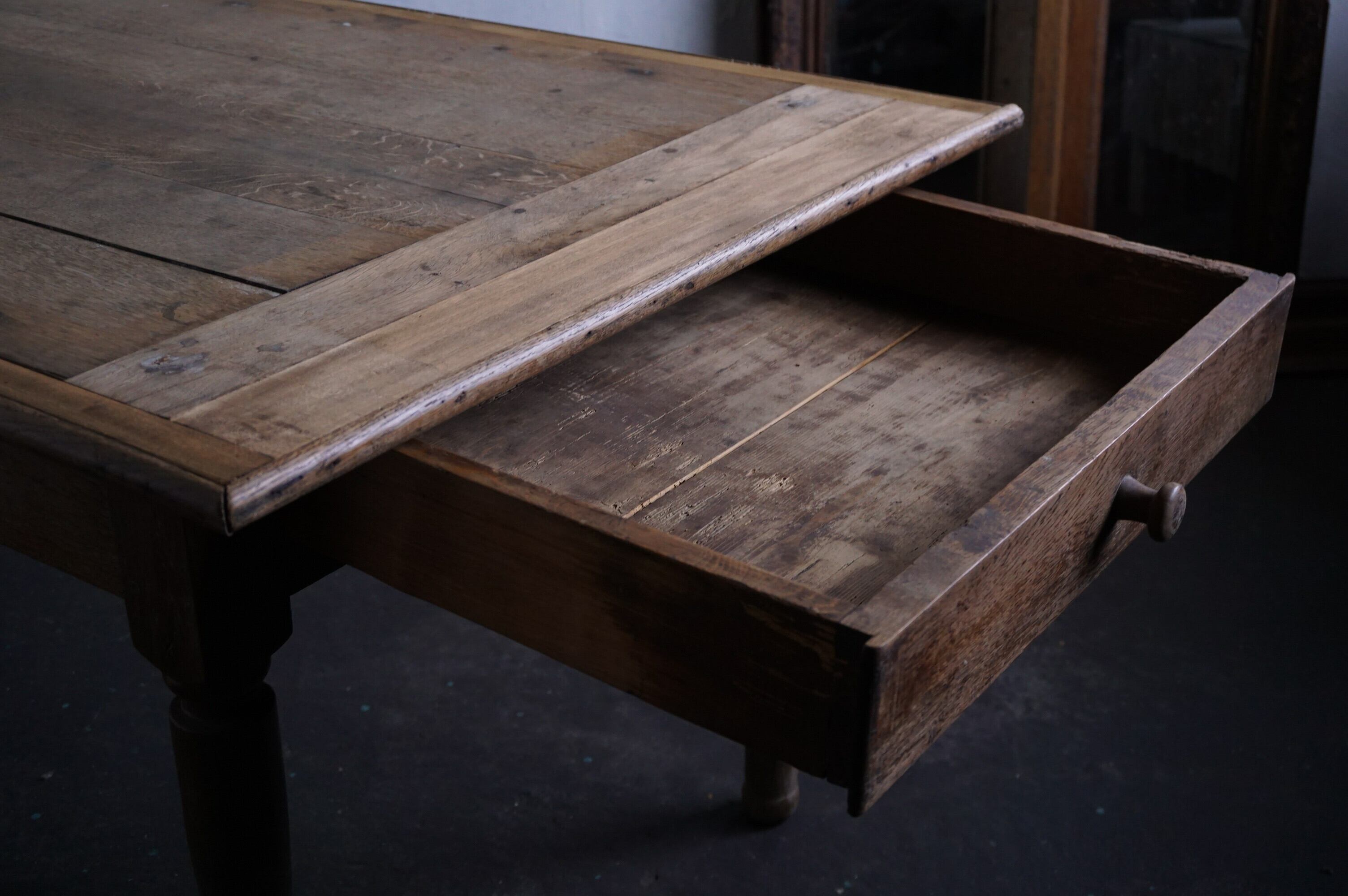フランスのダイニングテーブルで、アンティークのしっかりとした素敵な質感が出ております。