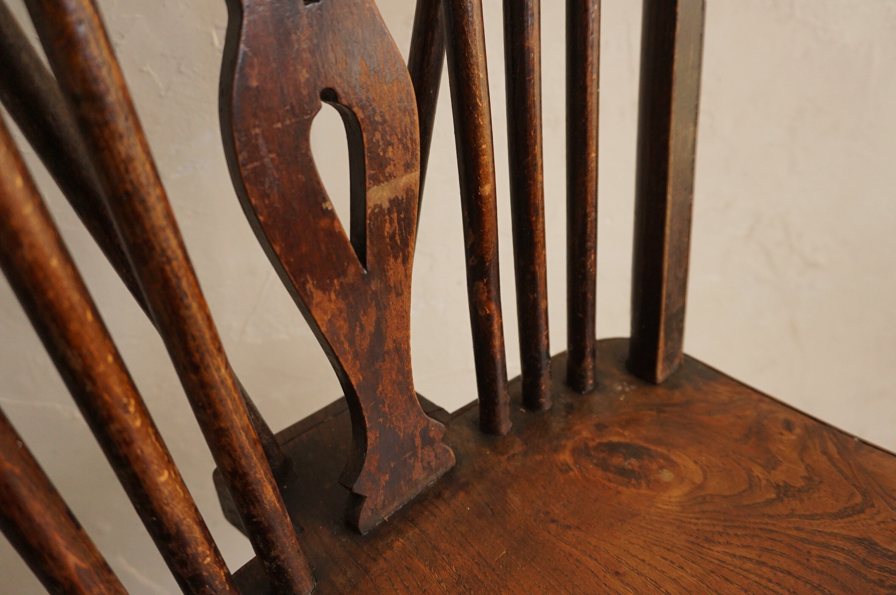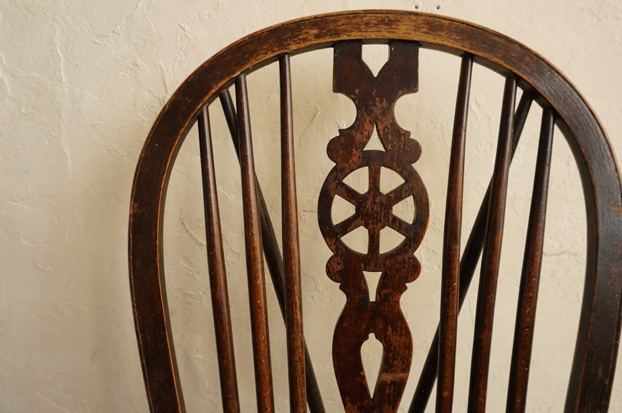 イギリスで見つけたアンティークホイールバックチェアです。