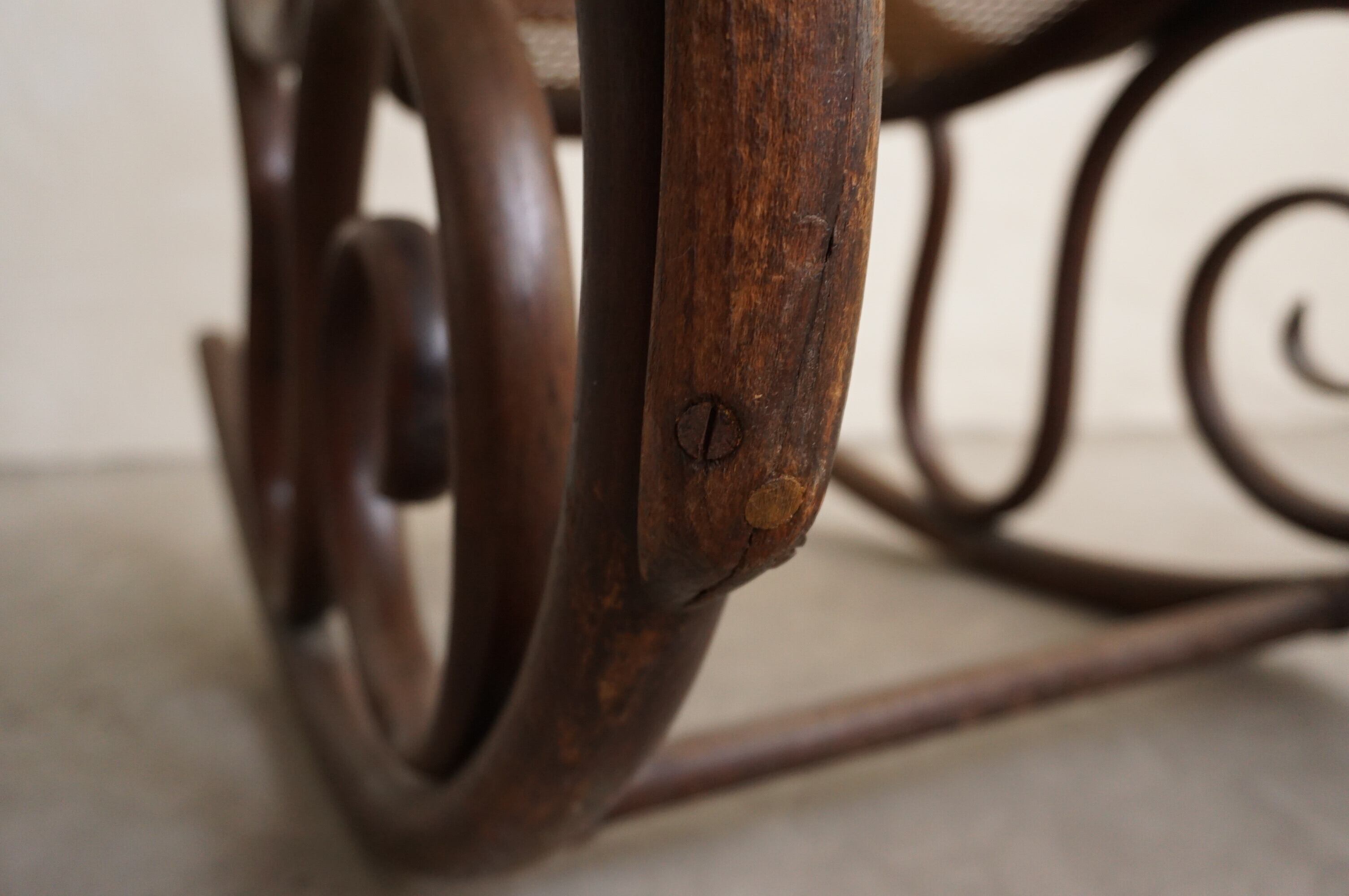 こちらのロッキングチェアも本当に曲げ木の技術とラインの美しい一品です!座面と背もたれには丈夫なカゴメ編みが使われており、安心して使用出来ます。