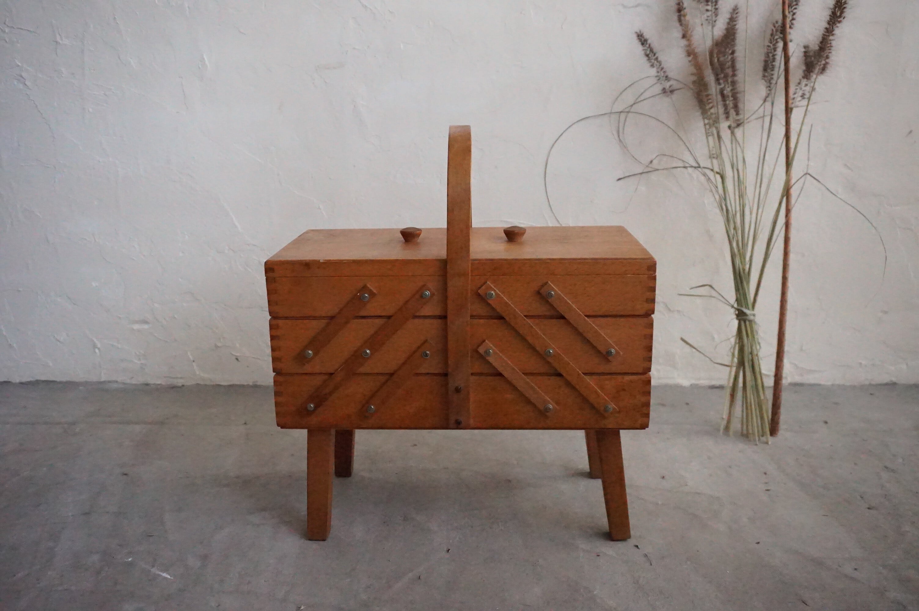 古いものですので、多少のキズ等は御座いますが、ナチュラルな色合いは裁縫箱としてだけでなく、インテリアや小物入れとしても活躍してくれそうです!!