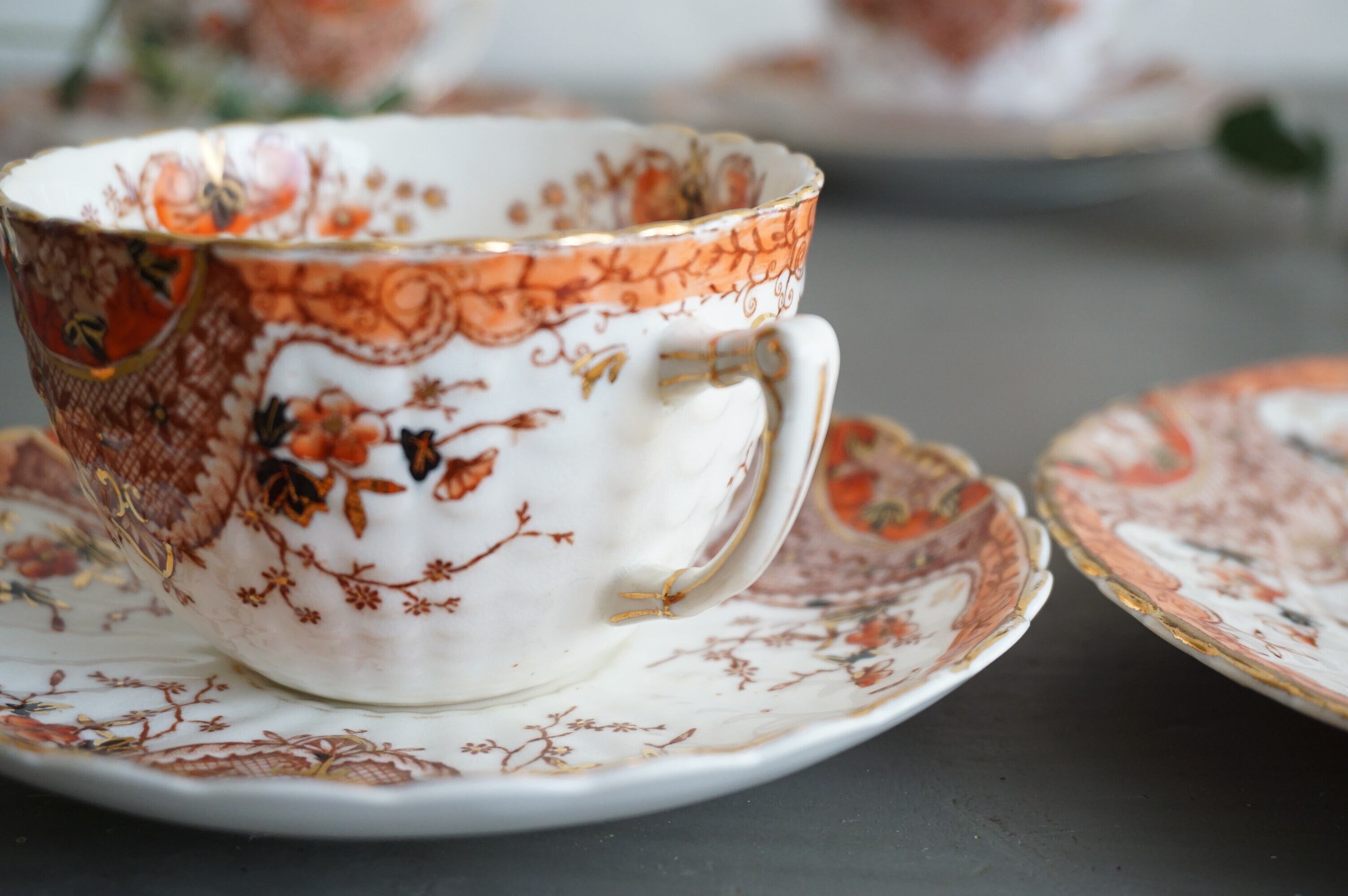 絵柄は、珍しいジャパニーズパターンと呼ばれるもので、梅の花の様な柄が見られます。文字に起こすのが難しいのですが、とても惹かれるものがあり、普段あまり柄物のカップは買い付ける事は少ないのですが、一目惚れしてしまいました!!